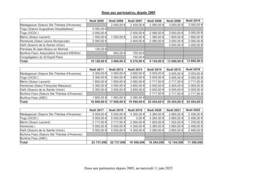 Dons aux associations partenaires effectués depuis Noël 2005 : fichier joint ci-dessous